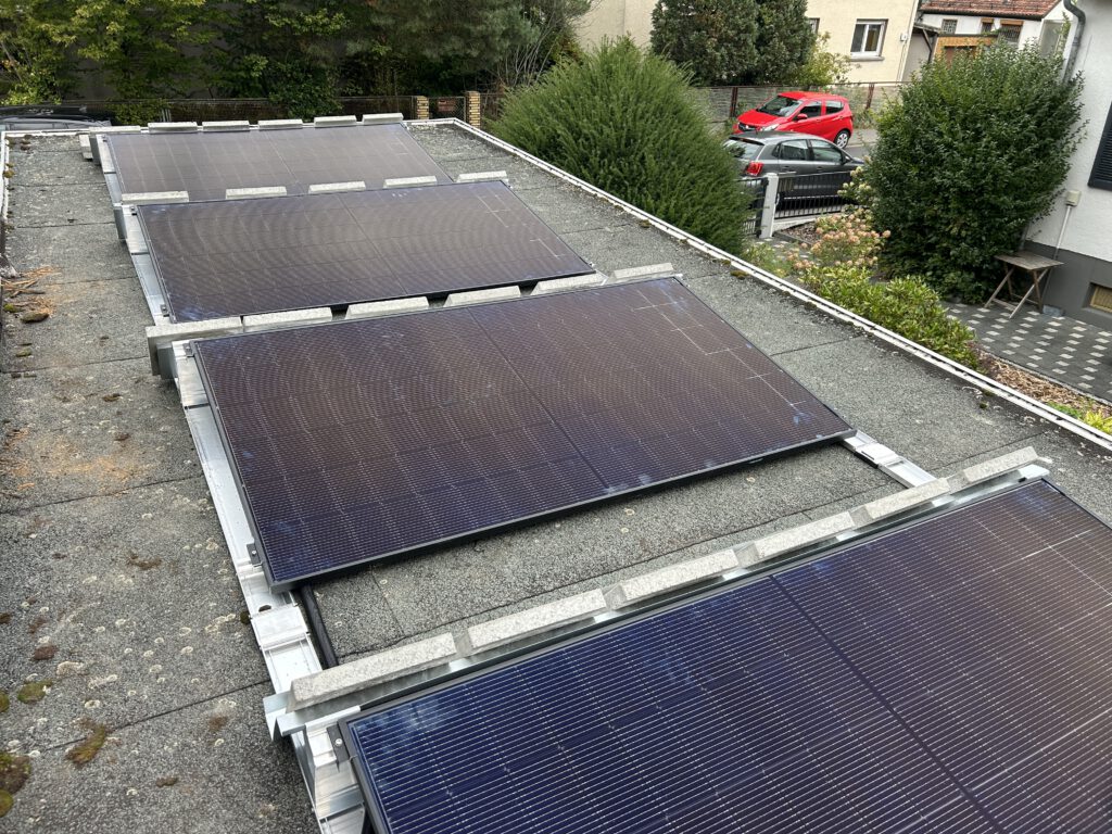 Ein 4-Modul-System bietet dem Wind eine große Angriffsfläche. Billige Systeme müssen oft mit enormen Gewichten beschwert werden, damit sie beim nächsten Herbststurm nicht abheben. Das ist Gift für die Statik vieler Garagen und Carports.