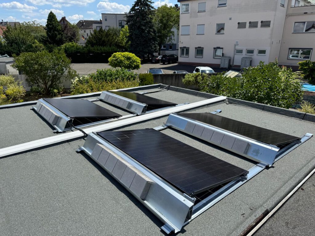 - Minimale Dachlast: Laut technischem Datenblatt erlaubt das System eine Ballastierung schon ab 5 kg pro Modul (abhängig von Standort und Gebäudehöhe). Das entlastet Ihre Dachkonstruktion massiv und verhindert langfristige Senkschäden.